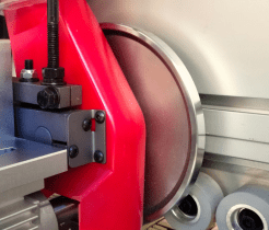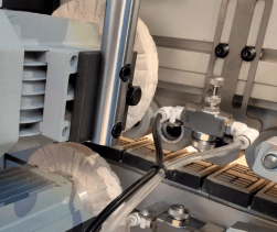 - Pre-Corte del canto realizado por medio del dispositivo de cizalla activado por un pistón neumático robusto.
