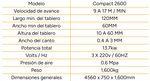 - 2 motores con 12,000 rpm para rectificar el tablero antes de aplicar el pegado. Lo cual garantiza una mejor precisión y acabado perfecto sin apostillado.