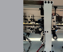 - Cuenta con el dispositivo bloqueo mecánico, Impide que se coloque un tablero a la banda antes que la maquina esté lista, también que se tenga la distancia correcta entre uno y otro tablero.