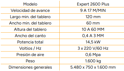 - 2 rodillos de presión para fortalecer la adherencia del canto al tablero con limpieza automática.