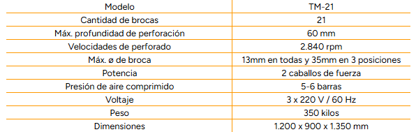 El XDrill es una máquina de perforación versátil, sistema 32, con cambio automático entre posiciones vertical y horizontal, controlado desde un panel frontal intuitivo. Incorpora cilindros neumáticos para el desplazamiento del cabezal y la línea de taladrado, guía lineal para posicionamiento preciso de paneles, y pedal de mando libre para perforación. Incluye juego de acoples rápidos para las brocas.